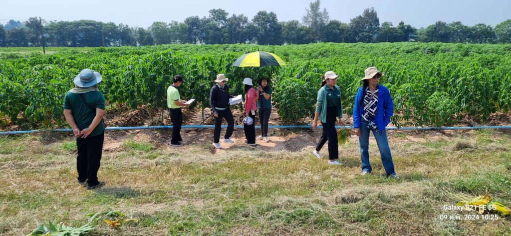 วันที่ 9 ตุลาคม 2567 นางสาวสิรภัทร อันไชยศรี นักวิชาการส่งเสริมการเกษตรชำนาญการ รักษาการในตำแหน่งผู้อำนวยการศูนย์ขยายพันธุ์พืชที่ 10 จังหวัดอุดรธานี พร้อมเจ้าหน้าที่ศูนย์ฯ นำคณะเจ้าหน้าที่กองขยายพันธุ์พืช กรมส่งเสริมการเกษตร ติดตามการดำเนินงานโครงการผลิตและขยายพืชพันธุ์ดี เพื่อเพิ่มประสิทธิภาพการผลิตภาคเกษตร กิจกรรมผลิตขยายท่อนพันธุ์มันสำปะหลังพันธุ์ต้านทานโรคใบด่างมันสำปะหลัง ซึ่งศูนย์จัดทำแปลงผลิตขยายพันธุ์มันสำปะหลัง จำนวน 50 ไร่ เป็นมันสำปะหลังที่ปลูกจากต้นพันธุ์แบบ X20 มีการติดตามอัตราการรอดชีวิต ความสูงเฉลี่ย จำนวนต้นที่ติดโรคใบด่างมันสำปะหลัง และสภาพแปลงในปัจจุบัน ลิงค์เพิ่มเติม