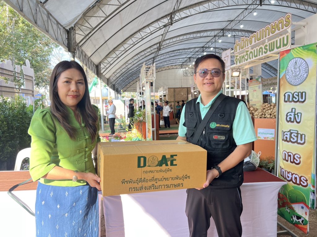 วันที่ 24 มกราคม 2568 นางสาวสิรภัทร อันไชยศรี นักวิชาการส่งเสริมการเกษตรชำนาญการ รักษาการในตำแหน่งผู้อำนวยการศูนย์ขยายพันธุ์พืชที่ 10 จังหวัดอุดรธานี มอบเมล็ดพันธุ์พืชผักให้สำนักงานส่งเสริมและพัฒนาการเกษตรที่ 4 จังหวัดขอนแก่น จำนวน 200 ชุด เพื่อใช้ในงานเกษตรภาคอีสาน ประจำปี 2568 ลิงค์เพิ่มเติม