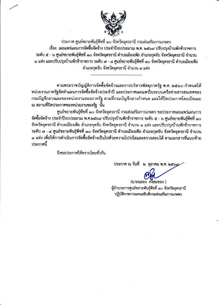 แผนการจัดซื้อจัดจ้าง ปีงบประมาณ 2569 – ปรับปรุงบ้านพักข้าราชการ ระดับ 5-6 ศูนย์ขยายพันธุ์พืชที่ 10 จังหวัดอุดรธานี ตำบลเมืองเพีย อำเภอกุดจับ จังหวัดอุดรธานี จำนวน 1 แห่ง และ ปรับปรุงบ้านพักข้าราชการ ระดับ 7 – 8 ศูนย์ขยายพันธุ์พืชที่ 10 จังหวัดอุดรธานี ตำบลเมืองเพีย อำเภอกุดจับ จังหวัดอุดรธานี จำนวน 1 แห่งBy admin / ่2 ตุลาคม 2025
