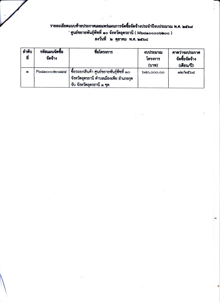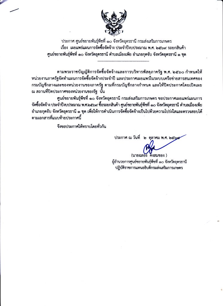 แผนการจัดซื้อจัดจ้าง ปีงบประมาณ 2569 – จัดซื้อรถยกสินค้า ศูนย์ขยายพันธุ์พืชที่ 10 จังหวัดอุดรธานี ตำบลเมืองเพีย อำเภอกุดจับ จังหวัดอุดรธานี จำนวน 1 ชุด