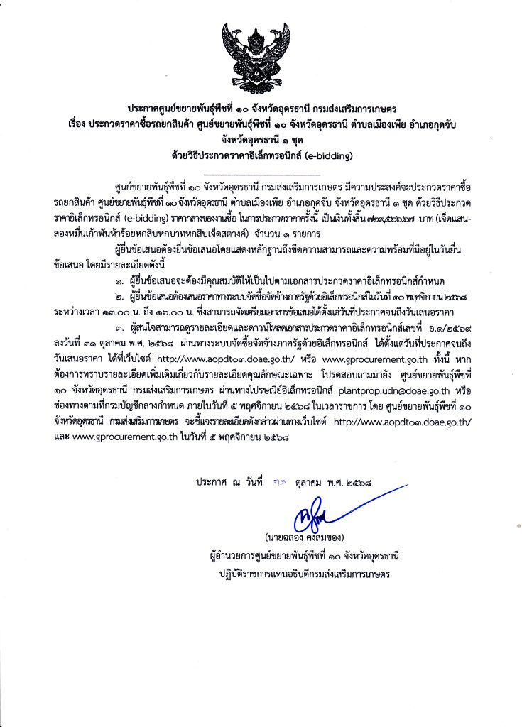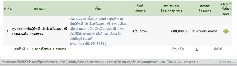 31 ตุลาคม 2568 : ประกาศประกวดราคาซื้อรถยกสินค้า ศูนย์ขยายพันธุ์พืชที่ 10 จังหวัดอุดรธานี 1 ชุด ด้วยวิธีประกวดราคาอิเล็กทรอนิกส์ (e-bidding) (เลขที่โครงการ 68109454811)